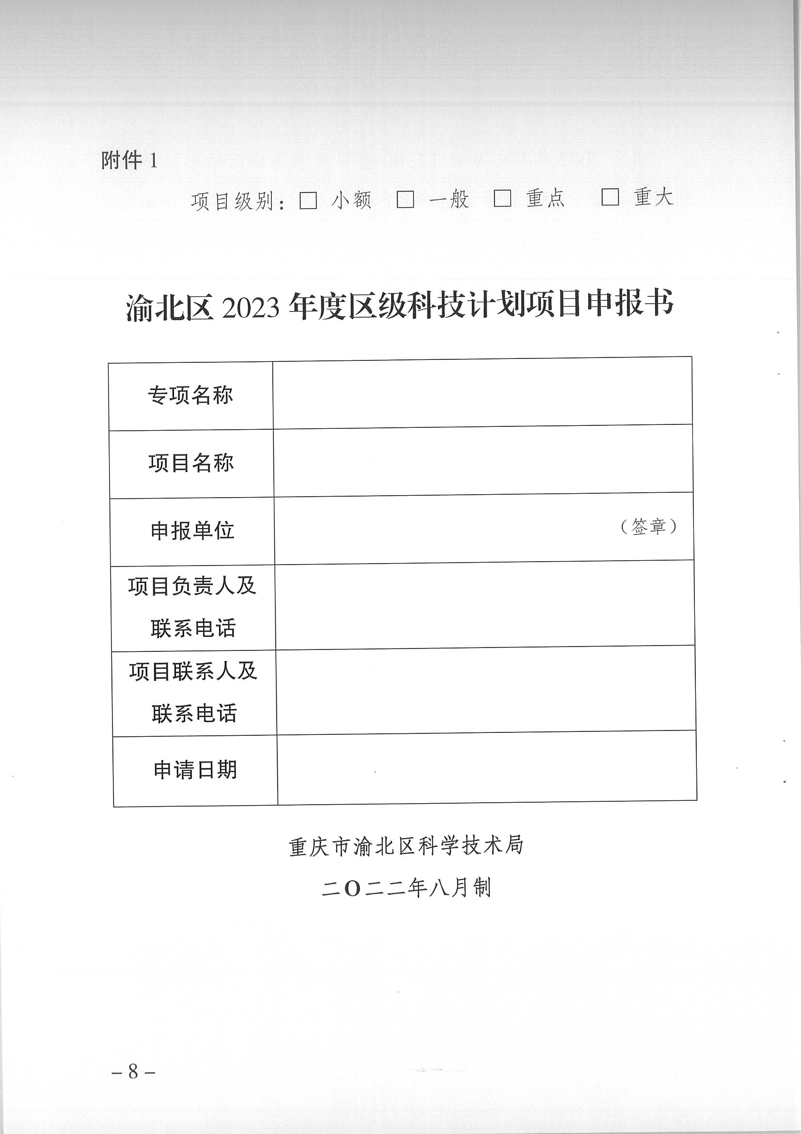 附件:1.《渝北区2023年度区级科技计划项目申报书》