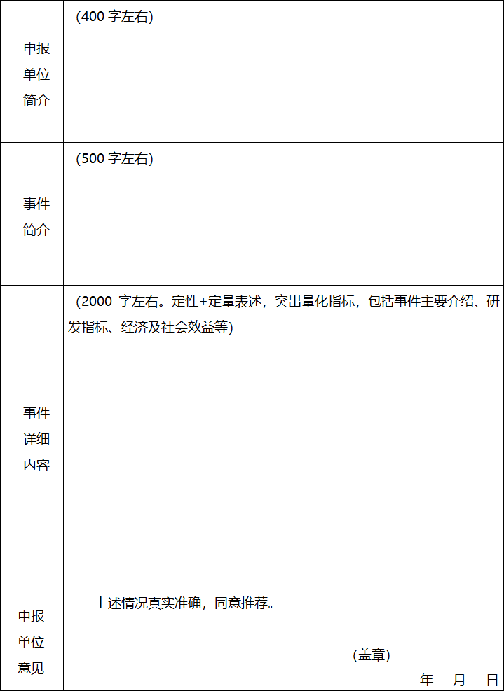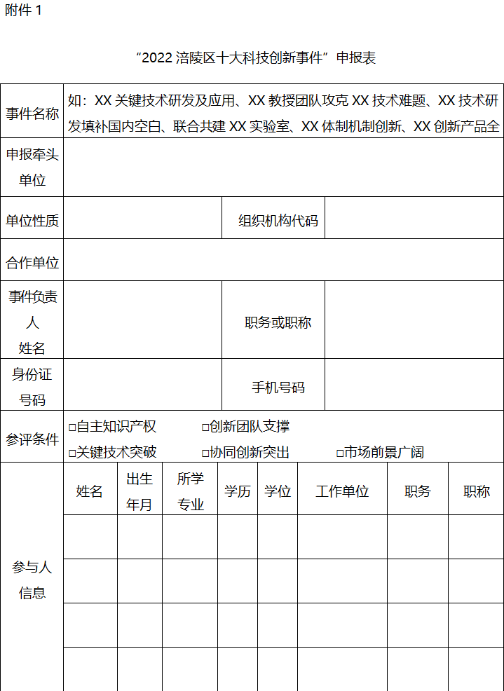附件:1. “2022涪陵区十大科技创新事件”申报表